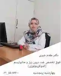 کد نظام پزشکی: 145136 ویزیت آنلاین فوق تخصص غدد در زمینه های زیر ارائه میشود: - درمان ناباروری - درمان چربی خون - درمان کم کاری هیپوفیز و سرطان آدرنال - درمان دیابت نوع 1 و نوع 2 و دیابت بارداری - درمان التهاب تیروئید، ندول تیروئید و سرطان تیروئید - درمان اختلالات پاراتیروئید و پر کاری و کم کاری تیروئید و ...