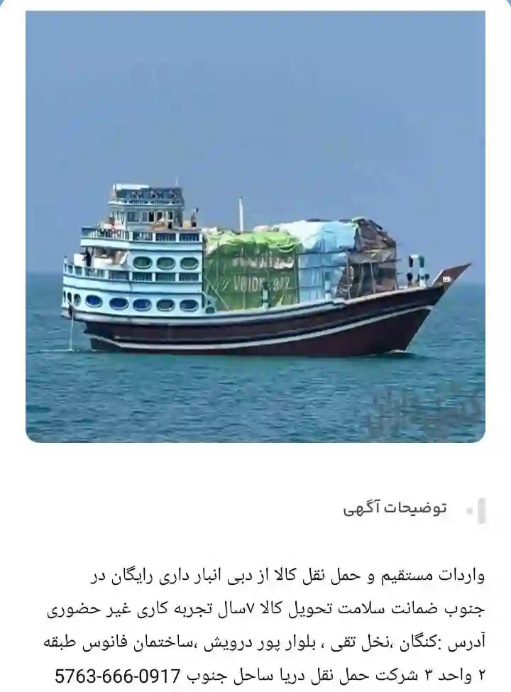 حمل نقل کالا از دبی با لنج لنج آخر ۱۴۰۳ آماده بارگیری عسلویه بندر ساحلی نخل تقی انبار داری۱ماه رایگان ،قید قرارداد یک کارتن الی ۱ کانتینر