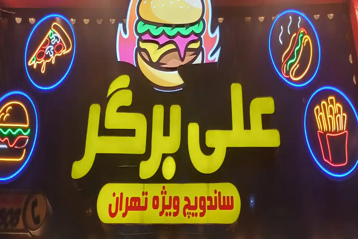 ارائه انواع ساندویچ فلافل با طعمی لذیذ و برگر های دستی 100%گوشت و پیتزا... فست فود علی برگر در چهارراه سرو برگرهای دستی،با بهترین کیفیت فلافل،با طمعی لذیذ و کاملا تمیز آشنا شوید.